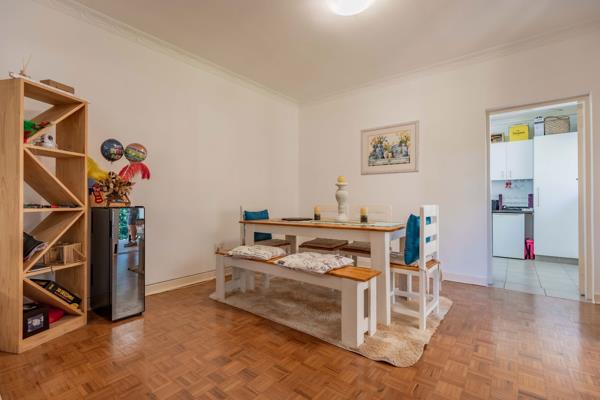 Step inside to discover timeless original parquet flooring and a sleek, well-appointed kitchen that flows effortlessly into the open-plan lounge and dining area. Glass doors lead to a covered patioenclosed on two sidesoverlooking pristine, landscaped gardens. Its the perfect space for quiet mornings or lively gatherings.