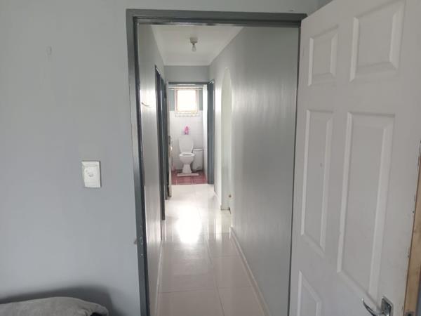 This home offers 3 bedrooms with built in cupboards, bathroom with separate toilet. The kitchen is fully fitted with built in cupboards, oven and hob and adjacent to is the dining area. It also boasts a spacious lounge with large aluminium door. There is a single garage with large parking space, fully fenced with access gate.