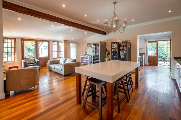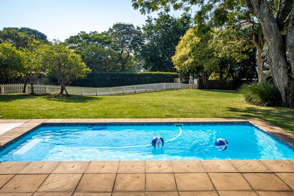 This Kloof home offers easy access to all significant amenities, including a selection of good schools, shopping malls, a popular gym, medical centres, and the well known SPRIGS cafe, Hussar Grill, as well as other renowned dining and takeout options. This inviting home is accessed through two automated gates. The first gate serves as the entry point to two of the three sectional title units. One enjoys the freedom and feel of a standalone home whilst only paying a small sectional title levy of R 634.80. Despite a secure and uneventful living experience, the current owners have installed cameras and perimeter, internal, and external security beams to ensure peace of mind. The window frames are aesthetically reinforced, and the sleeping wing, along with the immediate living and dining areas are secured with beautifully wrought security gates. Upon entering this property, one is awed by the gently sloping lawn, magnificent trees, and a home that opens onto an appealing pool area. This residence is designed for easy flow both inside and out, seamlessly linking multiple living areas with the outdoors for family living and upscale entertaining as the occasion arises.