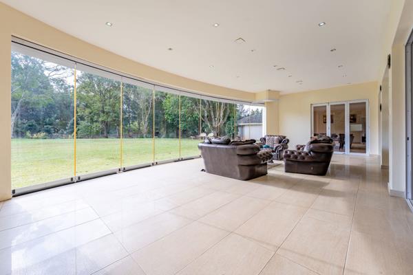 2000 sq metres of building and 7 800 sq metres of land. 4 garages. Separate building for staff. Many possibilities with this property wedding venue, b &b, boutique hotel, wellness (all with permission) or just a fantastic home for the large family and extended family to enjoy the beautiful grounds and spacious home. The home is within walking distance to the Kloof Country Club for all sports and restaurant entertainment. Safe nature walks into the conservancy or just plain exercise around the area where the homeowners are all conscious of the peace and quiet and take pride in the area.