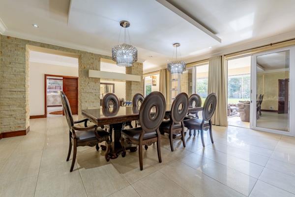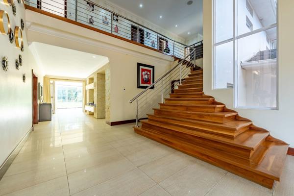 Through the expansive double doors to the vast entrance with high void exuding space, luxury and success. The living rooms are large with expansive windows for sunshine and light. Formal dining room to entertain many a guest in a traditional way. Lengthy sunroom with views and access to the luscious garden.