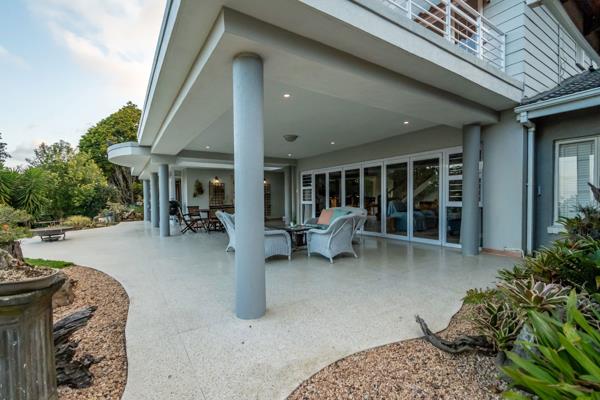 Impressive Residence . Set in the prestigious golf course area, this home has views to the sea. Beautiful living areas with new aluminium stack doors a plenty. Beautiful large light-filled kitchen. Lovely lounge with a cosy fireplace. 3 of the 4 spacious bedrooms have balconies for fresh air and views. All boast en suite bathrooms. Bonus is the 3 bedroomed cottage privately positioned which can be upscaled for family or rental income. The garden and pool are dreamy, a pure delight on summer days. The front verandah is where you savour this luxurious lifestyle.