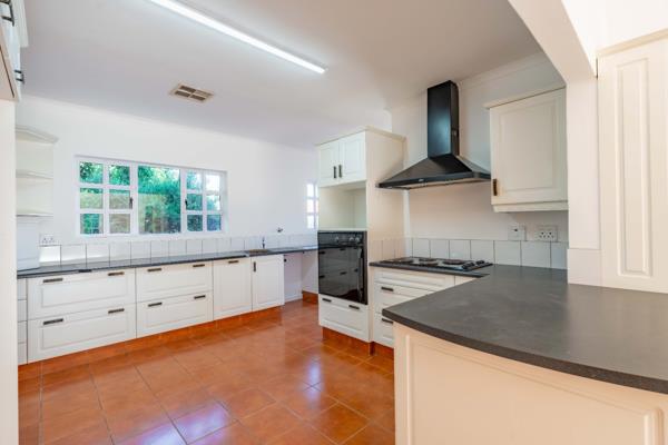 Outdoor amenities include a well-maintained garden and paved areas, alongside practical parking solutions with two garages and four additional parking spaces. Security is a priority, featuring a perimeter fence, electric fencing, an access gate, a security post, 24-hour security, burglar bars, and security gates, ensuring peace of mind. Pets are welcome.