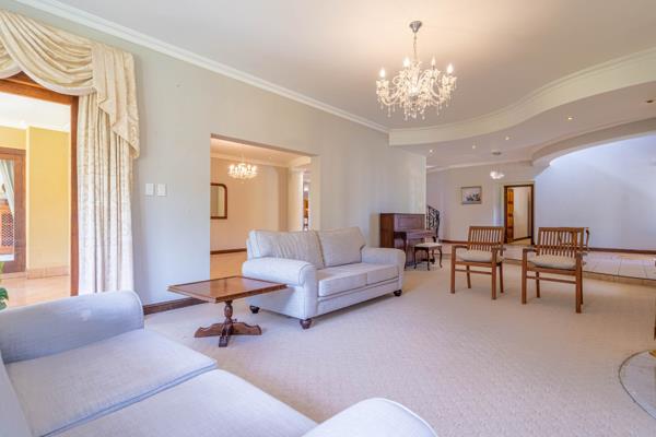 This home is an entertainers dream. The spacious formal lounge beautifully fitted with a fireplace and chandeliers leads out onto a patio overlooking the expansive, level, manicured garden complete with sparkling pool. The impressive dining room leads off the formal lounge. The gourmet kitchen which leads off the family lounge has granite counter tops, solid wood cupboards and a breakfast bar. It also has an eye level oven, gas hob, extractor fan, built-in fridge, wine rack, prep bowl and pantry cupboard everything that the chef would need to prepare for a large party of guests. There is also a separate scullery or