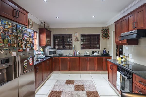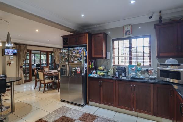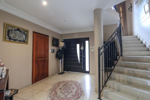 Spacious double storey family home close to schools, shops and with great access to the M13. The living areas are large and open plan with a large braai room leading onto the garden and pool. There are 4 bedrooms and 3 bathrooms upstairs with large open plan living areas downstairs. The kitchen has a scullery plus an additional kitchen/ laundry area. The garages access directly into the house.