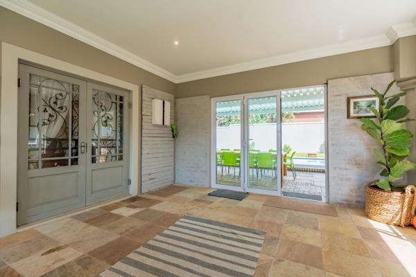 The bedroom wing offers three spacious and beautifully finished bedrooms, all well-equipped with ample cupboard space. Centrally positioned between them is a generous study that can effortlessly serve as a fourth bedroom, playroom or dedicated work-from-home space. The living areas are equally impressive, with an inviting open-plan flow from the well-appointed kitchen through to the dining area and comfortable lounge. Double doors then lead to a large leisure lounge extending around the main living space, creating an ideal indoor-outdoor transition for family gatherings or entertaining.