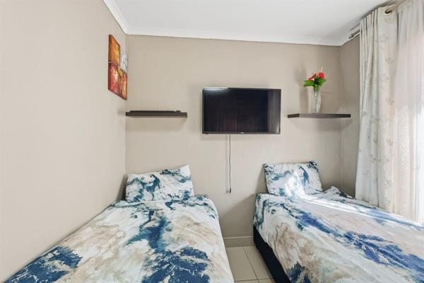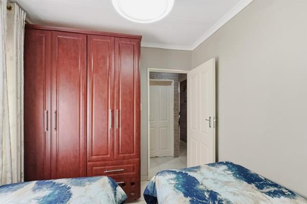 The bedrooms are well-sized with ample built-in cupboards, while the main bathroom includes both a bath and shower, complemented by a separate guest toilet for added convenience.