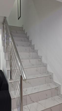 As you make your way upstairs, youll find three comfortable bedrooms, two fitted with built-in cupboards and modern blinds, creating a neat and stylish atmosphere. A family bathroom serves the upper level, offering convenience for everyday living.