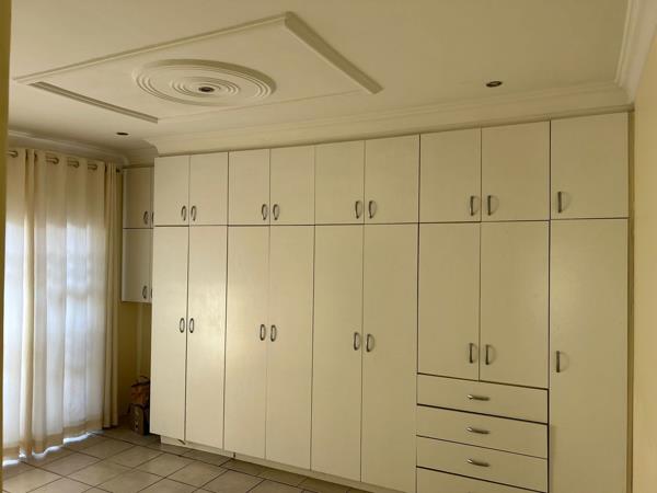 Spacious kitchen with lots of cupboard space and counter space, flowing into the living area. There are 4 lovely sized bedrooms all with built in cupboards and 2 bathrooms