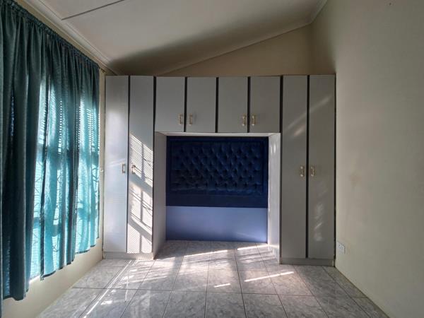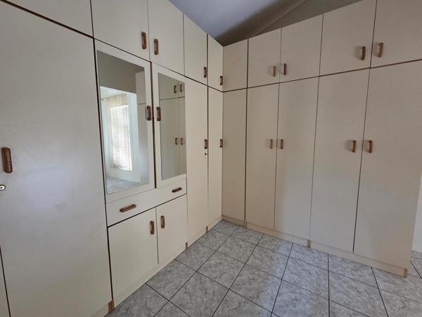 The property is fully tiled throughout and offers built-in cupboards in all bedrooms. It features a spacious, fully fitted kitchen, flowing into an open-plan lounge and dining area, ideal for everyday living and entertaining.
