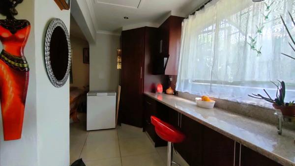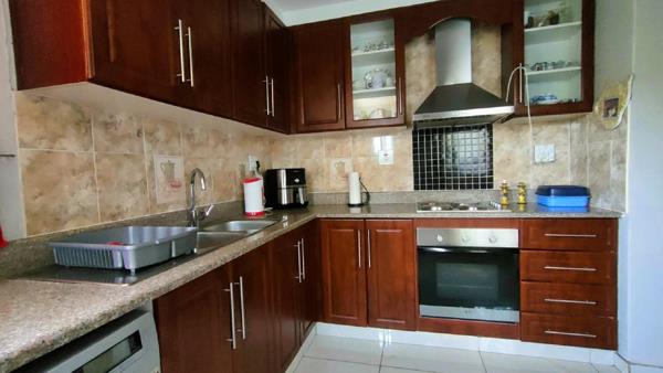 The lovely open plan kitchen, fully fitted with adequate counter space for those meal preps as well as a separate dining room. As you step out the kitchen door, you step into a private covered back yard area, fully fenced and secure with alarm and boom gate entrance.