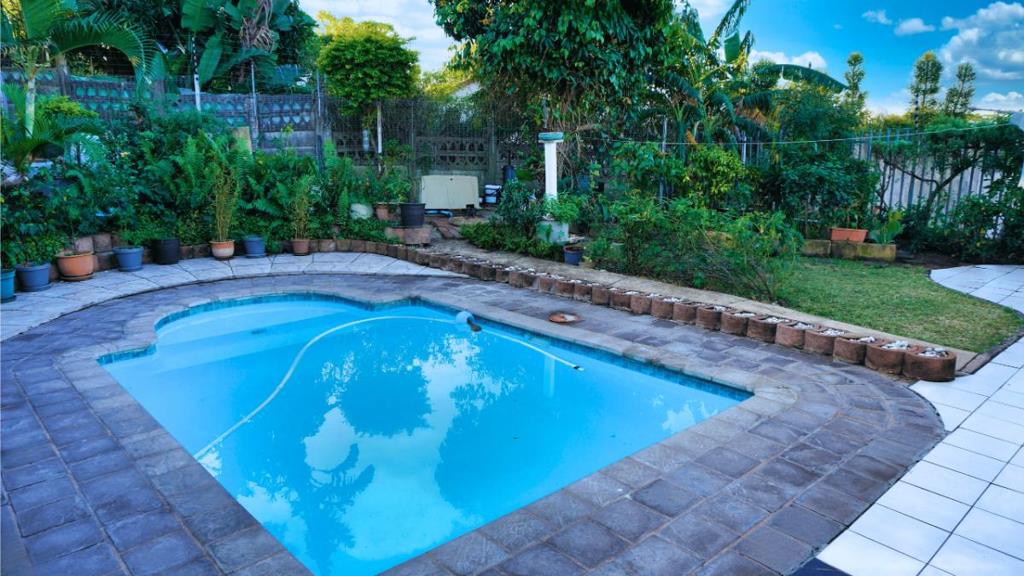 Outdoor living is a dream with a private backyard featuring a lush garden, a covered entertainment area, and a heated, sparkling poolperfect for year-round enjoyment.