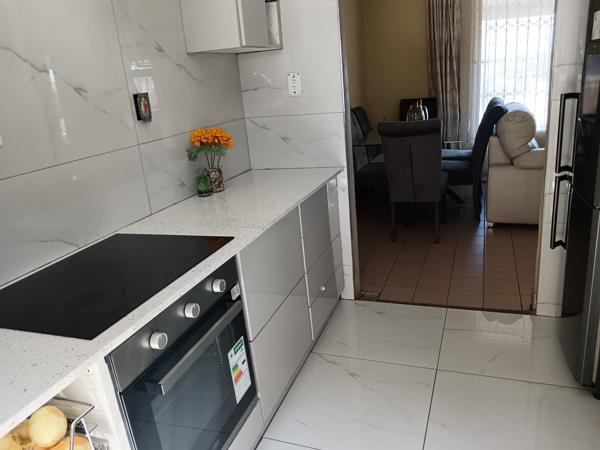 Absolutely stunning home consisting of 3 bedrooms 2 with built in cupboard. Fully fitted kitchen with granites tops. Lounge with dining room Beautifully general bathroom. Drive in access. Slightly above road level. Fully fenced and automated gate. Fully tilled throughout the house. The house is close to public transport, public schools, places of worship, clinic and Midway Crossing mall.