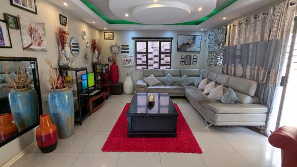 The living spaces are designed with an open-plan layout, combining the lounge, dining area, and modern kitchen perfect for family gatherings and entertaining guests. The lounge area is stylishly finished with, feature ceilings, and warm lighting that create a cozy, inviting atmosphere.