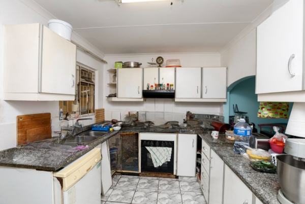 Fitted kitchen with open-plan dining and lounge area leading through sliding doors to a lovely outdoor entertainment and braai area