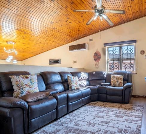 The house is fully secured with burglar guards, aluminum doors and windows, automated gates at entrance, 3 automated garage doors, fibre, airconditioning and state of the art inverter system for uninterrupted power.