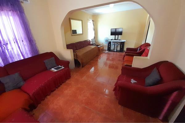 The expansive lounge and dining area, adjacent to the kitchen and passage, provide ample space for family gatherings and entertaining guests. The front entrance features an elegant aluminium sliding door, protected by a covered patio area, adding both security and charm to the home. The extended section of the house is adorned with aluminium windows, enhancing its modern appeal.