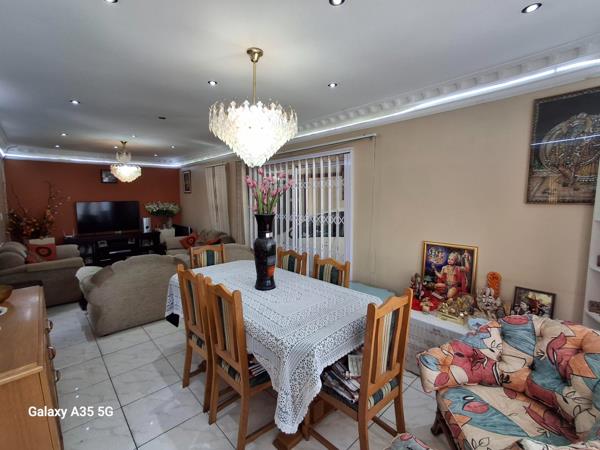 - Open-plan lounge and dining area with elegant chandeliers and downlighters, plus a sliding door for natural light