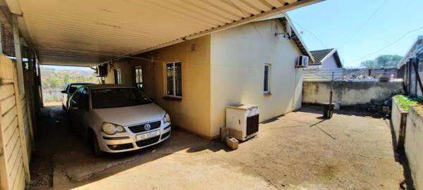 Security gates, burglar bars, Covered parked for three vehicles, aluminum windows.