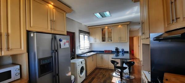 Open plan air-conditioned living area with a dream kitchen in a dream home, carefully planned with loads of convenient work areas, enough cupboard space, elegant and timeless galaxy black granite countertops for the stars.