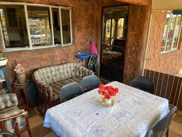 Security gates, burglar bars, covered parking which is separated by stack doors which is an outbuilding which generates and income of R4500 pm.