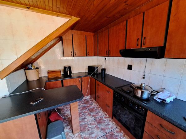 - Kitchen with built-in cupboards includes stove, oven and extractor
