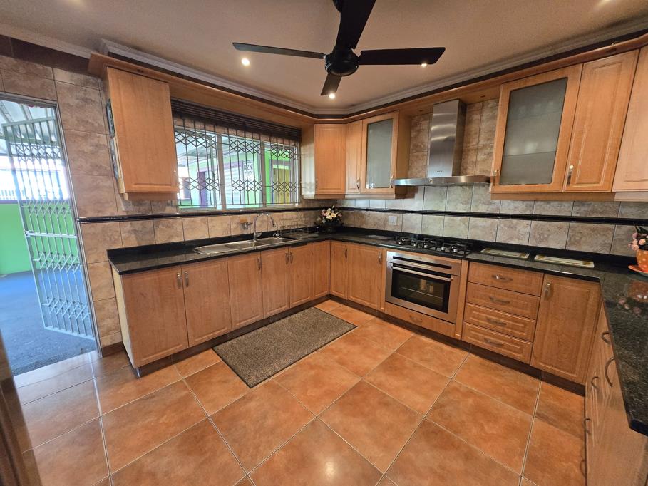 Fully Fitted Kitchen Granite countertops, gas stove, ample cupboard space, and a ceiling fan