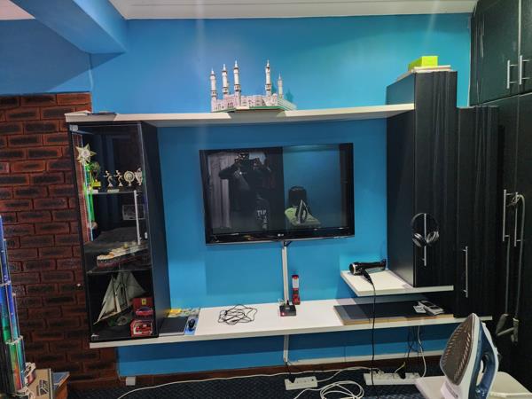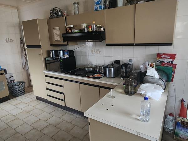 5 Bedrooms: Main bedroom with tiled floors, oak veneer built-in cupboards, and ensuite (shower, basin, toilet) Additional bedrooms with built-in cupboards, carpeted floors, and air-conditioning in one room, One smaller bedroom ideal for use as a prayer room or study, 2 Family Bathrooms: both fully tiled with showers, toilets, and washbasins, Converted single garage with tiled floors, aluminium, sliding door, Expanda gates, and its own toilet and basin (ideal for guest accommodation or office use)