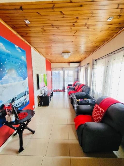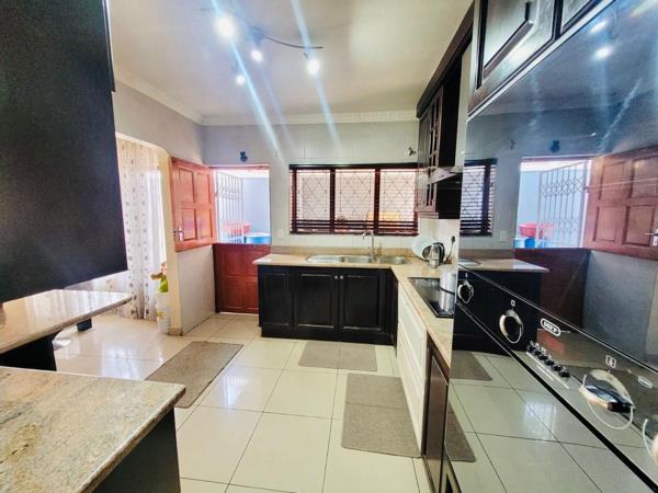 This stunning 4-bedroom home is move-in ready and offers modern, comfortable living with top-notch features. The house is fully tiled and air-conditioned, with spacious built-in cupboards in all bedrooms. The master bedroom includes an en-suite, while a guest bathroom serves the rest of the home. The open-plan design features a fully fitted kitchen with a breakfast nook, a dining area, and a spacious lounge with a stylish quartz feature wall. A double garage provides secure parking, with additional space for six vehicles and a carport. The property is equipped with an advanced security system, including an alarm and outdoor sensors. The paved and tarred exterior is well-lit, with lighting along the boundary walls.