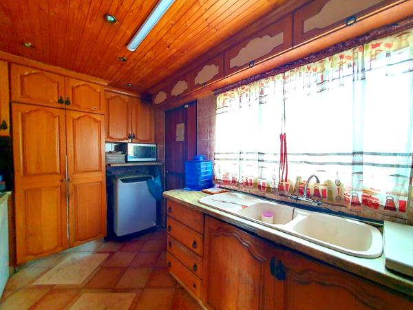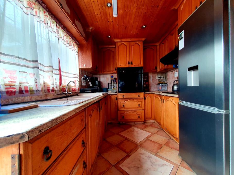 Kitchen is fitted with built-in cupboards.