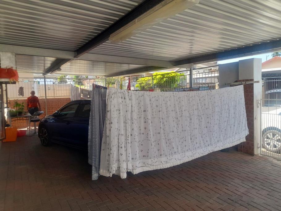 The property sits comfortably on road level, ensuring wheelchair-friendly access, and is located in a secure, sought-after neighborhood. A single lockup garage is positioned on the left side of the house, while the expansive front yard and driveway are covered by a massive carport, offering secure parking for up to six vehicles in addition to the garage. The entrance flows into an expansive lounge, ideal for entertaining, with ample space to accommodate both a fridge and freezer to serve the adjacent kitchen.