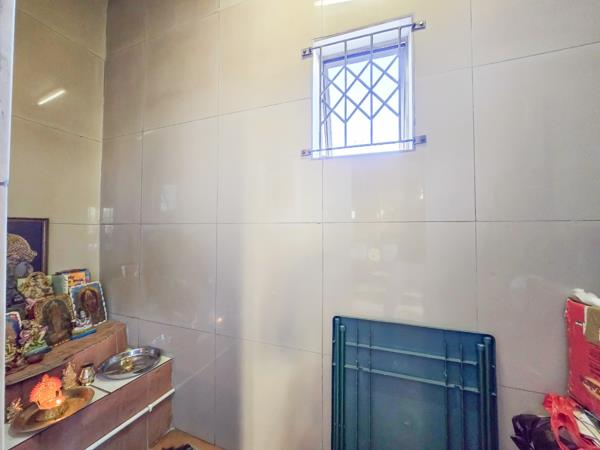 The main house features a generous, fully tiled lounge area that seamlessly flows into a dedicated prayer room perfect for moments of quiet reflection. A short staircase leads you to three well-sized, fully tiled bedrooms, each fitted with built-in cupboards. The home includes a modern bathroom with a shower, and a separate toilet for added convenience.