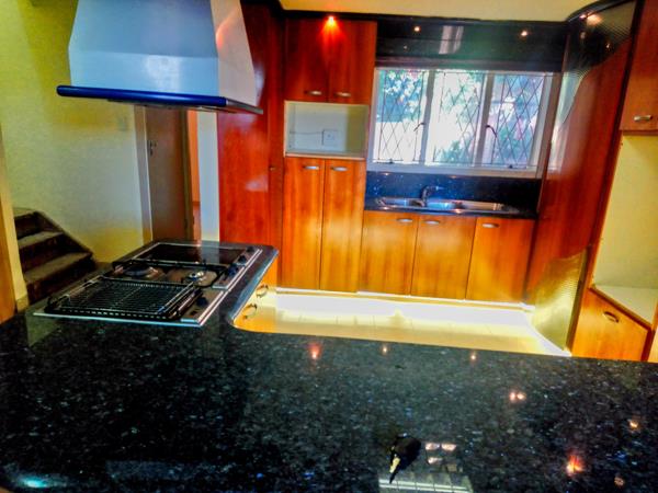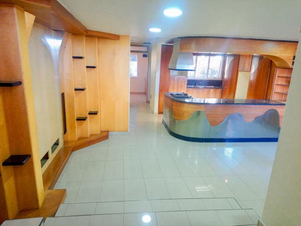 Enter into a TV lounge with a built-in display unit and peer in from the open plan, functional kitchen with entertaining and socializing at its core. A separate entertainment area with a full bar area flows through aluminium windows and doors onto the large covered balcony. The kitchen offers a stainless steel stove top and chimney style extractor. Extended on beyond the prep area is separate pantry, scullery kitchen and laundry area with more built-in cupboards. Upstairs boasts a family bathroom and toilet plus an en-suite in the extended master bedroom. Three generous size bedrooms all with modern built-in cupboards. The feature main bedroom opens up endless possibilities to customize, either as a fourth inter-leading bedroom, a nursery, a walking closet or dressing room which leads to the main bedroom with built-cupboards and a shower en-suite.