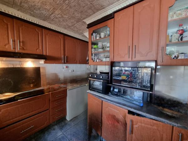 Kitchen is fitted with built-in cupboards.