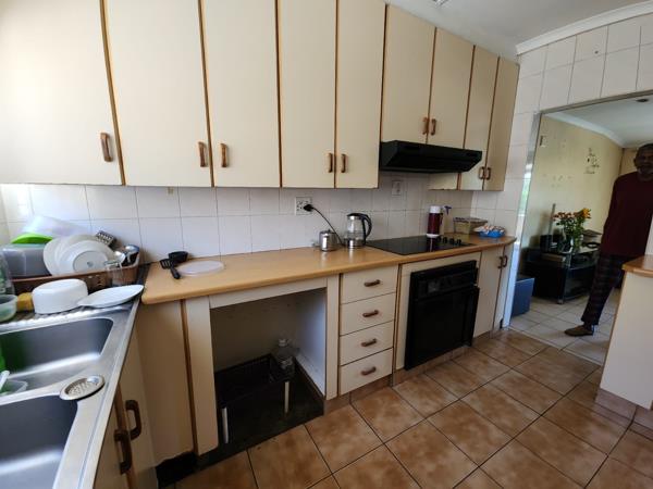 The property features three bedrooms, including a newly renovated main bedroom with an en-suite bathroom fitted with a shower, basin, and toilet. While this bedroom does not have built-in cupboards, it offers a fresh, modern finish. The second and third bedrooms both include built-in cupboards, with the second bedroom being the only room fitted with air-conditioning.