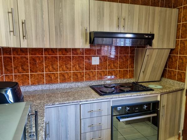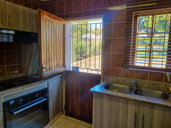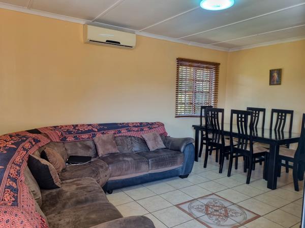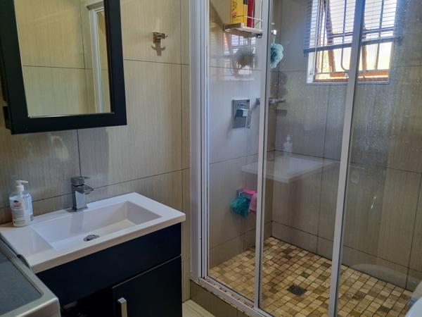 It has a walk through around the property with a courtyard and laundry area. Manicured garden with grass and enough space to add a pool at a later stage. The property has ample space around it that is maintained by the current owner as this is a corner property and has immediate access to this space ensuring secure parking in the property for more vehicles and convenience of your guests.