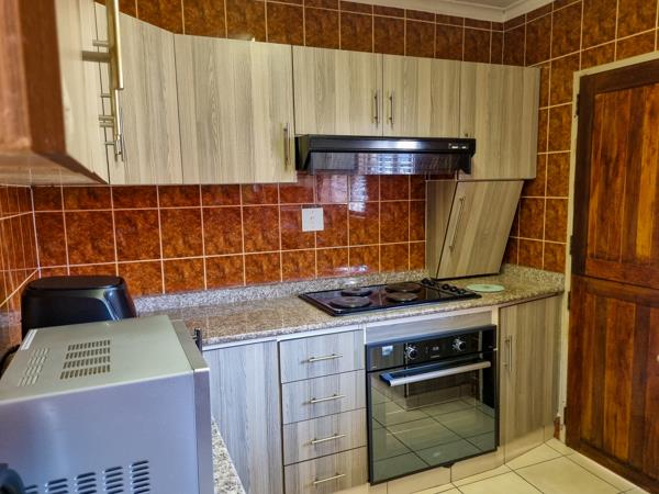 The Kitchen is modernly designed with units, stove and hob with granite counter tops that flows into the dining room area and Lounge area that seamlessly extends to the outdoors and is ideal for entertaining friends and family.