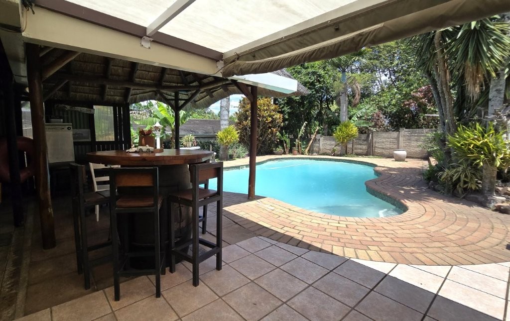 On the market for the first time in 29 years. Nestled on quiet road on an almost level, fully walled plot with auto access. Just a short walk to the Ashley Primary School & not too far from the Gelofte Afrikaans School. With easy freeway access to the M13, M7, N3 & more! Boasting parquet floors & high-rise ceilings. 3 bedrooms (BIC) with A/C in the master bed. 2 family bathrooms plus a guest loo. Large lounge. Sep dining room. Open plan granite kitchen with fitted hob. Laundry & teen pad. The teen pad is currently a work from home office, airconditioned with wood laminated floors. Offering great granny flat potential! The back of the property is an entertainers dream with 2 thatch roof Lapas. Large, covered patio & swimming pool. Extra storage with a Gemini hut & an established veggie garden. Ample parking in the front of the home, double shade port & a tandem L U garage.
