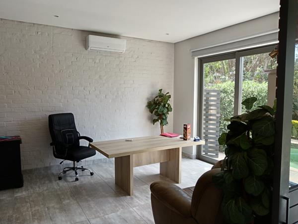 A dedicated home office just off the entrance offers the ideal environment for remote work or quiet reflection.