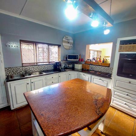 Step into a warm and inviting interior that opens up into a generous lounge with built-in barperfect for entertaining guests or enjoying cozy evenings. Air conditioning in the lounge and two of the bedrooms ensures year-round comfort. The separate dining room leads into a well-designed kitchen complete with a scullery, coffee bar countertops, kitchen island, and even an outside gas stoveideal for whipping up family meals or hosting summer braais.