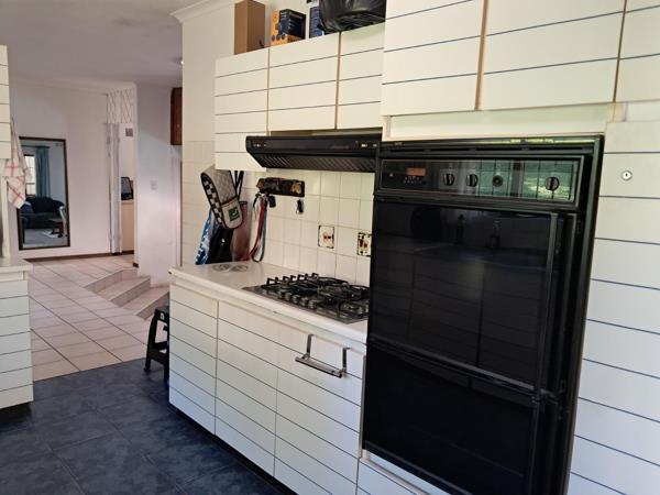 The well-designed kitchen boasts ample cupboard space, an eye-level oven, hob, and a functional layout that makes meal preparation a pleasure.