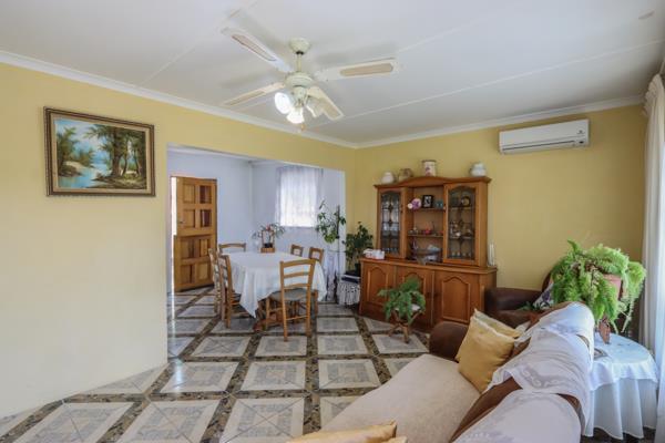 The open-plan lounge and dining area flow seamlessly into a fully fitted kitchen, ideal for both everyday living and entertaining. Additional features include air conditioning, ceiling fans, and ample natural light throughout.