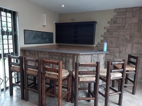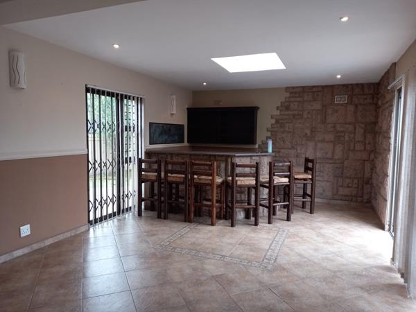 The heart of the property boasts 3 well appointed bedrooms, each room complete with built-ins, designed for comfort and style, along with all the usual essentials like fully fitted kitchen, scullery, lounge, dining, laundry which truly makes a house a home. The master bedroom has an en suite with a luxurious jacuzzi, the perfect private retreat at the end of a long day. Also what truly sets it apart is the bar and entertainment room- perfect for hosting unforgettable moments with family and friends. Wide patio doors open seamlessly onto the sparkling swimming pool, creating a relaxed indoor outdoor flow, ideal for summer living
