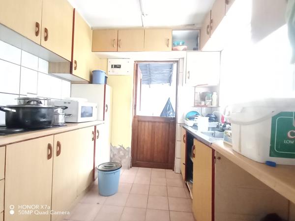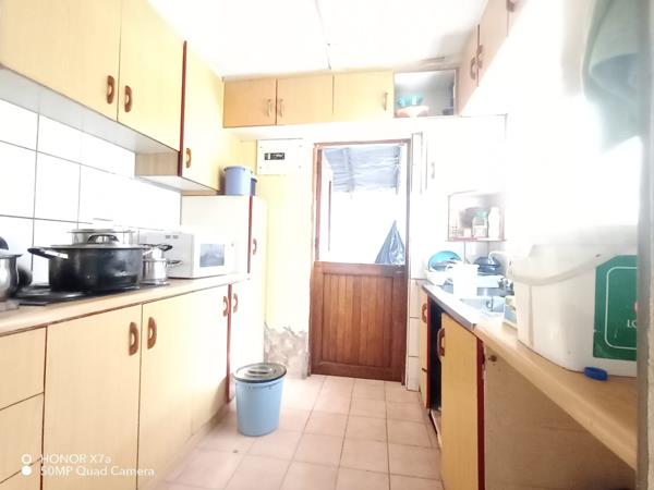 The kitchen features built-in cupboards and a door leading to a private, enclosed courtyard ideal for use as a laundry area or additional storage.