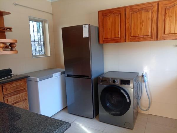 Down the passage, you''ll find three generously sized bedrooms , each fitted with air conditioning. The main bedroom boasts a modern ensuite with a sleek hand basin, toilet, and shower. A second stylish family bathroom serves the remaining rooms.