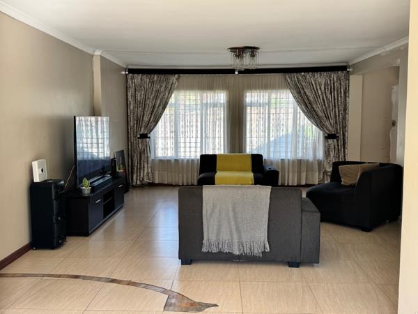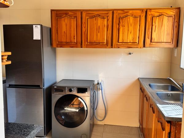 The home features a fully fitted kitchen with a separate scullery for added practicality, ideal for keeping cooking and cleaning spaces organised. The spacious lounge and dinning area provide a welcoming atmosphere for entertaining and relaxing.