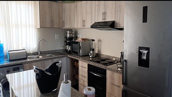 Step into the open-plan kitchen, equipped with sleek granite countertops, a stove with oven, and an extractor fan, making it a chefs delight. The kitchen seamlessly flows into the spacious lounge area, where you can comfortably accommodate a dining table for six and a cozy seating area. Enjoy beautiful views from the large balcony, perfect for relaxing or entertaining guests.