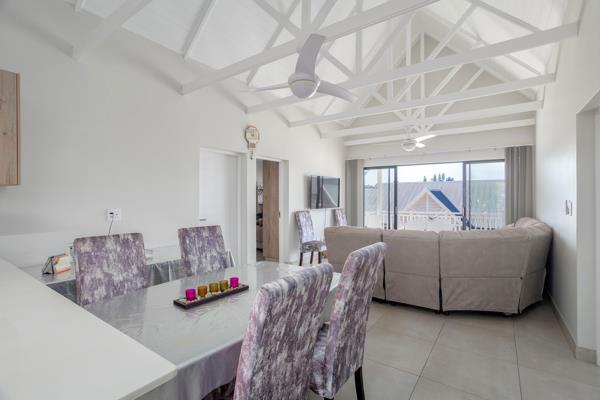 The open plan living and dining area leads out through a sliding door onto a spacious enclosed private patio which gives you scenic views of sunrise and sunset, and abundance of bird life. The modern fitted kitchen features a breakfast bar, 4 burner gas stove and under counter oven, extractor fan, lots of built in cupboards, and a separate scullery with dish/washing machine plumbing connection. Both bedrooms are very spacious and offers built-in wardrobes. The en-suite bath features a wheelchair accessible shower and toilet with basin. Call now to arrange a viewing