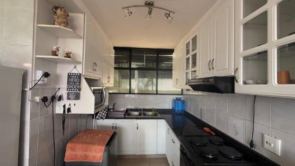 This superb two-bedroom duplex at Sunny Birches, The Birches, is filled with natural light. It is neat and well-maintained, featuring an enclosed patio, an open-plan modern kitchen, lounge, and dining area, plus a guest loo. The bedrooms are upstairs with one family bathroom. The unit also includes a prepaid electricity meter.