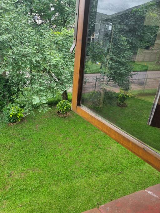 The entrance hall leads you to an open plan dinning room . The dinning room leads to a TV room with scenic views. Both the dinning room and the lounge are tiled with wooden laminate flooring with matt finishes. The lounge has air-condition that is well serviced.
